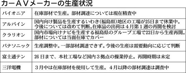 〈東日本大震災〉不安定な半導体供給、カーナビ生産にも影響