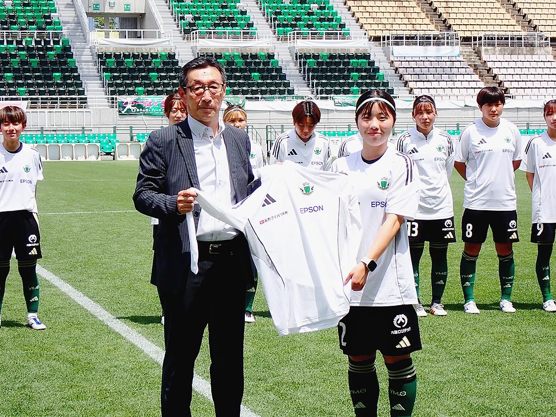 長野ダイハツ販売(出口浩社長)は、松本市の総合球技場サンプロアルウィンで「ユニフォーム寄贈式」を開催した。地域スポーツの発展と女子サッカーの飛躍を願い、松本山雅FCレディースにウェア一式(プラクティス用25セット、トレーニング用25セット...
