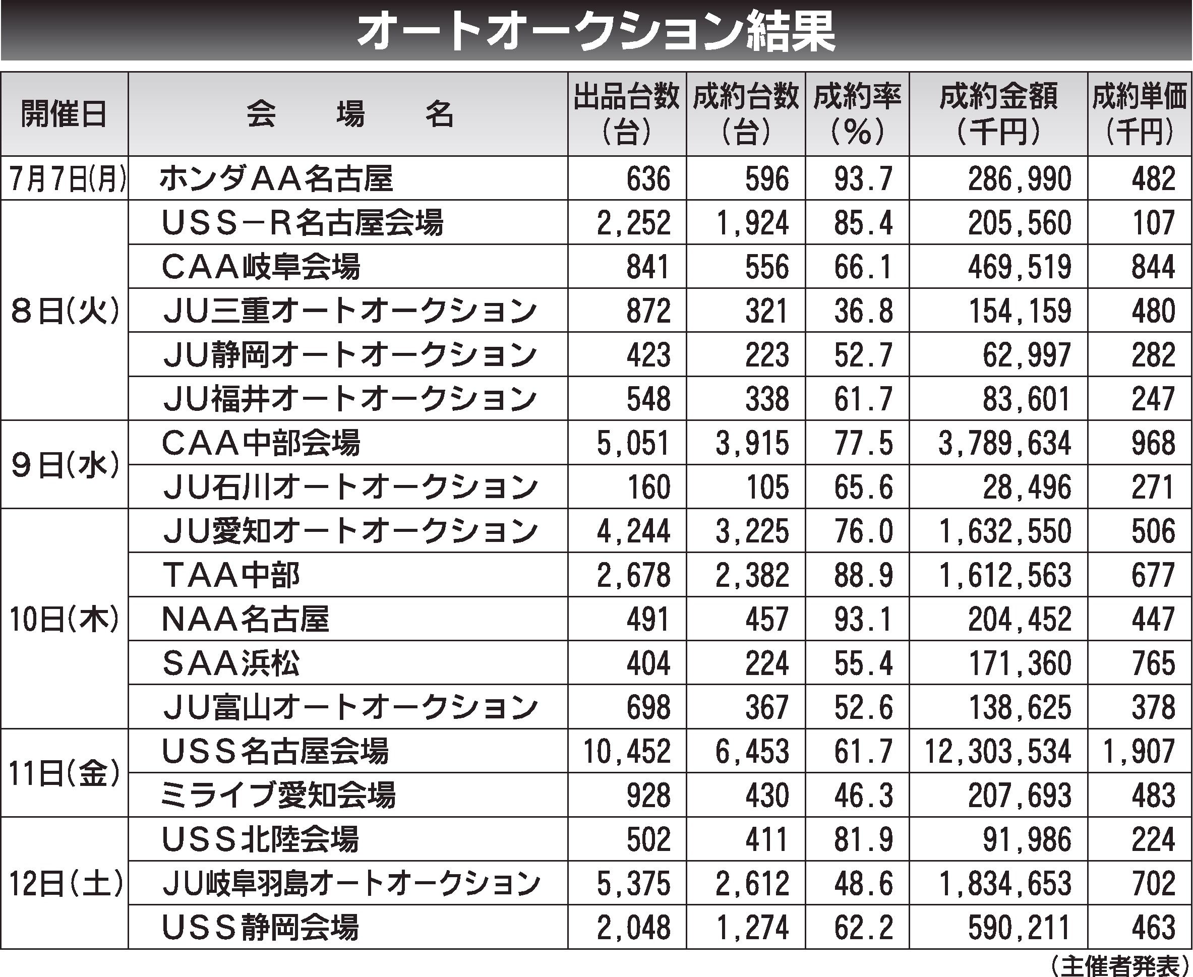 〈オートオークション結果〉中部地区 2025/7/7~12