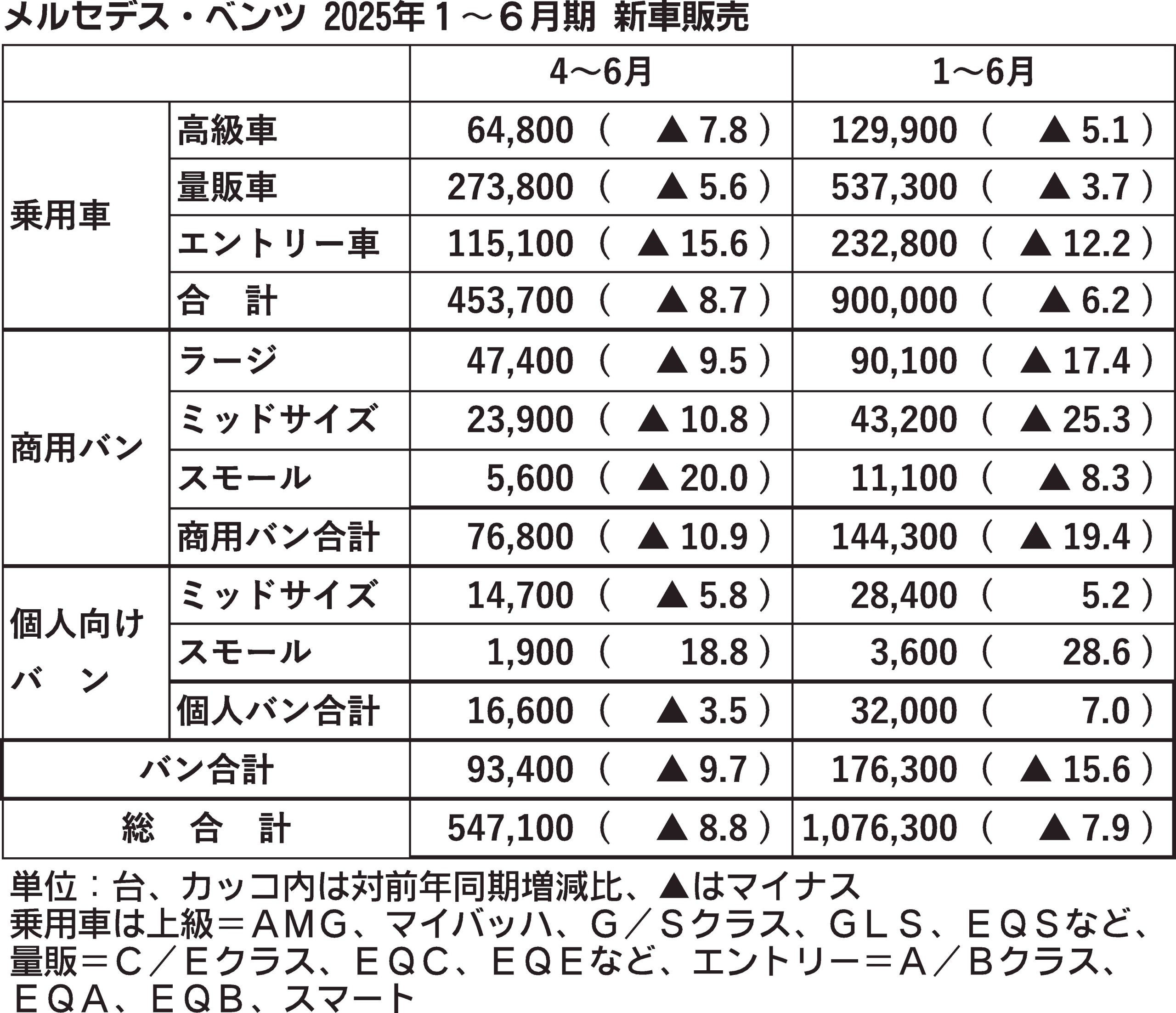 ドイツの大手自動車メーカー、メルセデス・ベンツとBMWグループが発表した2025年4~6月期世界新車販売台数は、メルセデスが1割弱減少し2四半期連続のマイナスとなった一方、BMWは微増ながら5四半期ぶりのプラスに転じた。ただ、両社とも地場...