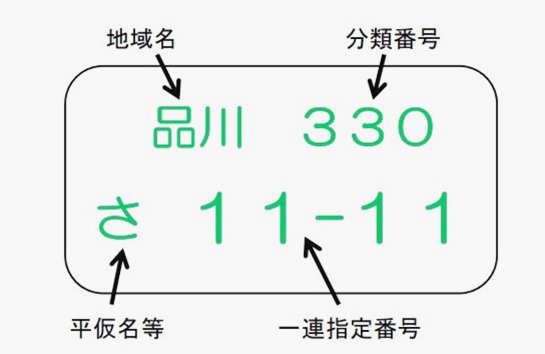 ナンバープレートの表示は、管轄する運輸支局や自動車検査登録事務所を示す「地域名」、自動車の種別や用途を示す「分類番号」、自家用か事業用か、レンタカー用かを区別する「平仮名(ひらがな)等」、4桁数字の「一連指定番号」で構成されており、プレー...