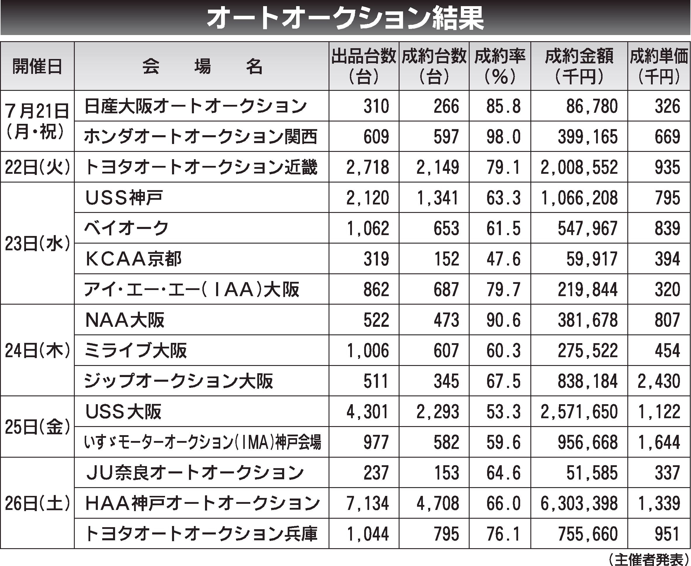 〈オートオークション結果〉近畿地区 2025/7/21~26