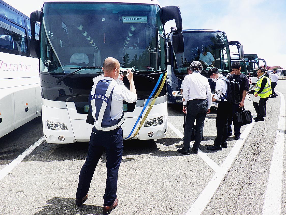 山梨運輸支局、貸切バス事業者の街頭監査を実施