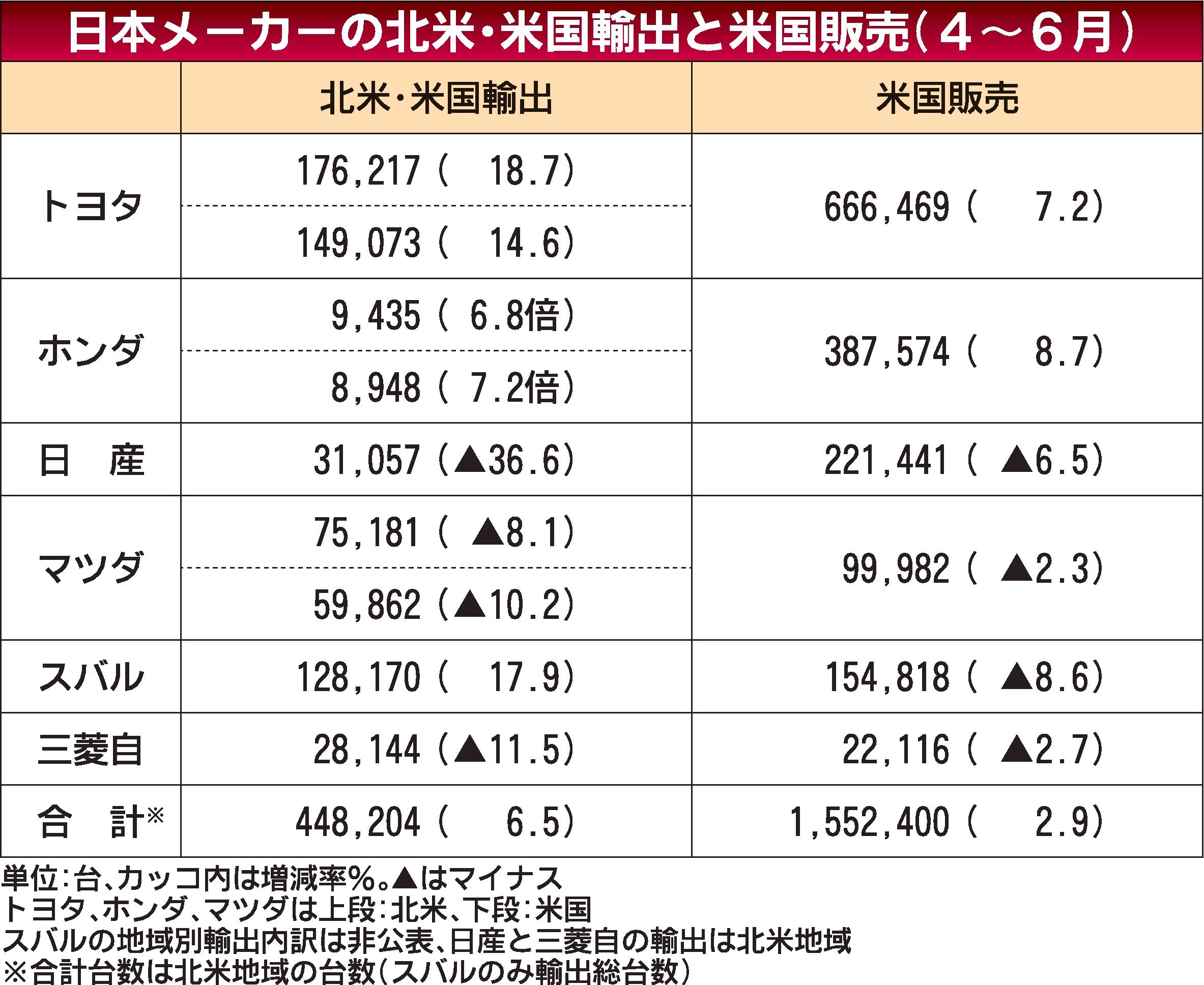 〝トランプ関税〟が直撃した4~6月の日本メーカーによる米国販売および北米向け輸出は、いずれも前年同期の実績を上回った。日本メーカーの多くは4月の自動車追加関税発動後も米国での販売価格を据え置き、目立って輸出を減らす動きも見られなかった。追...