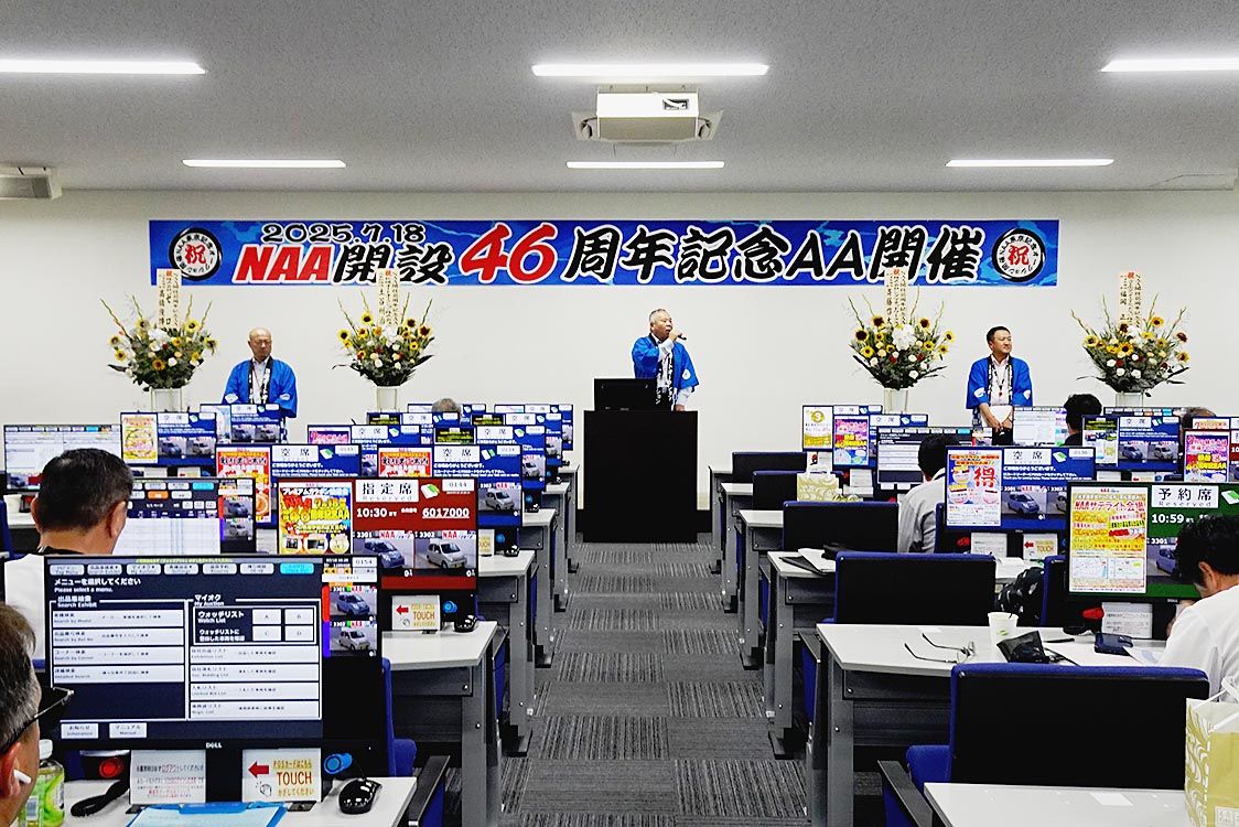 日産ユーズドカーセンター(NUC、安田孝治社長、横浜市鶴見区)は、日産オートオークション(NAA)東京会場(同)で「開設46周年記念AA」を開いた。 出品台数は前年比9.4%減の822台、成約率は同4.3ポイント減の87.7%だった。安田...
