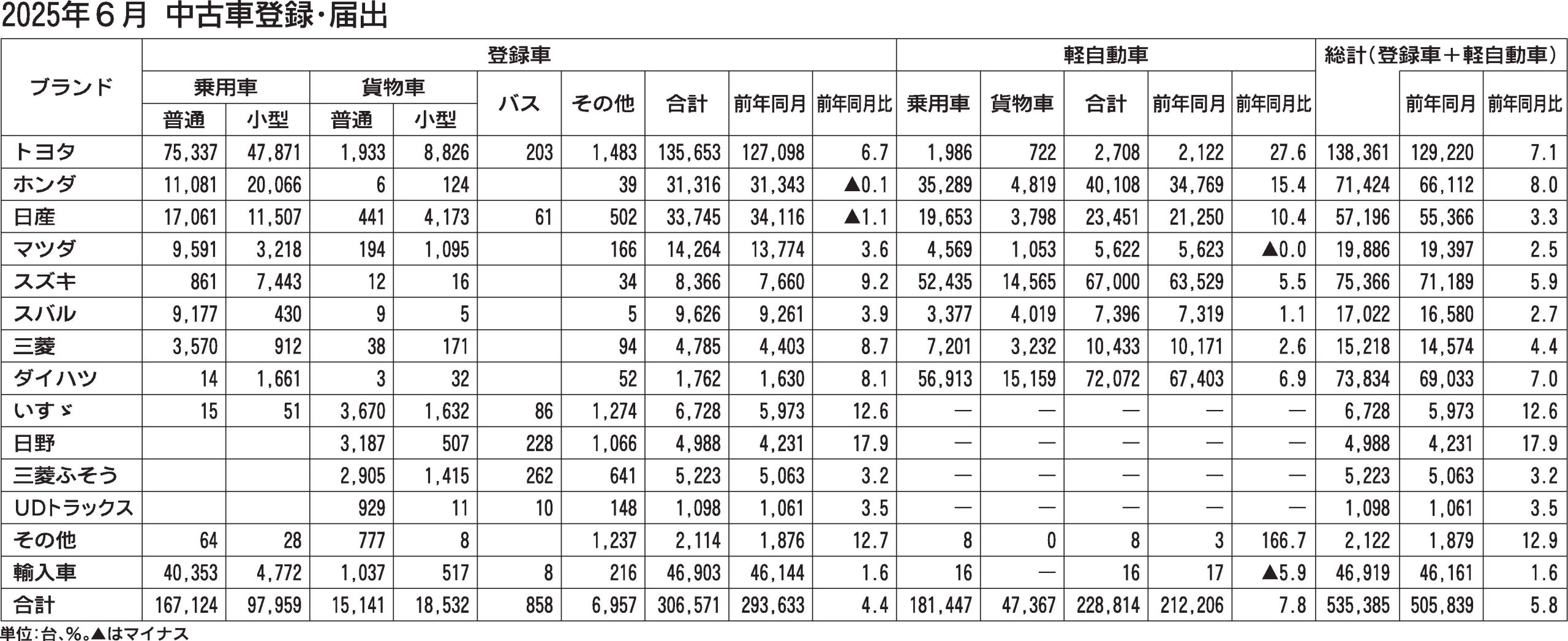 〈2025年6月 中古車登録・届出〉