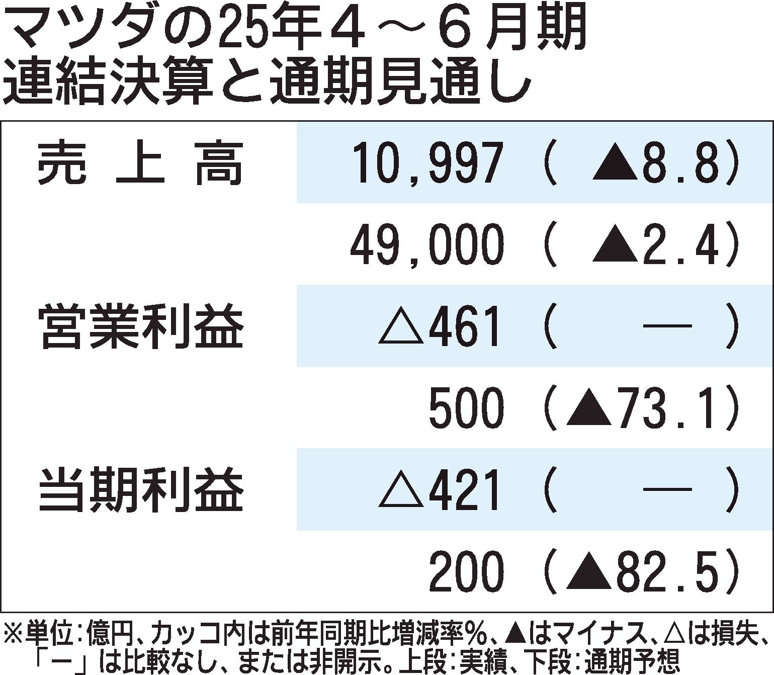 マツダは5日、2026年3月期通期の純利益が前期比82.5%減の200億円となる見込みだと発表した。売上高は前期比2.4%減の4兆9千億円を見込む。マツダは世界販売の3割を米国で販売しており、追加関税は通期で2333億円の減益要因になると...