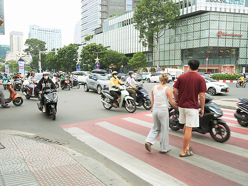 ベトナムのジャーナリスト曰く「横断歩道を渡る時は、突っ込んでくるバイクに驚いて止まったり、引き返すと逆に引かれる。横断歩道では気にせず直進した方が良い」と当然のように話す。ジャーナリストの言葉の真偽は不明だが、日本の交通ルールやマナーとのギャップは強く感じた。