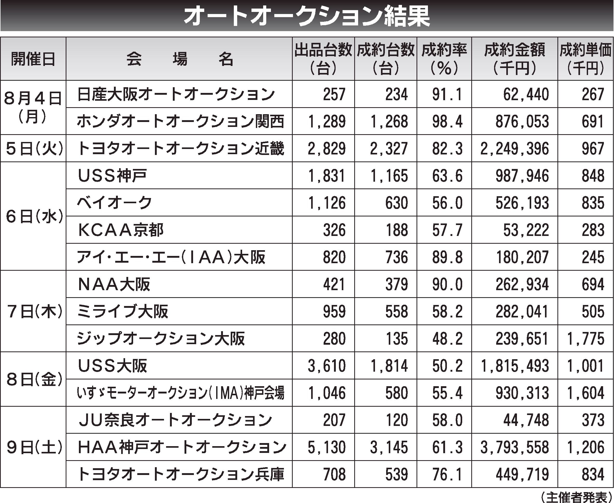 〈オートオークション結果〉近畿地区 2025/8/4~9