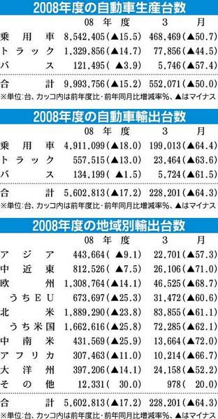 2008年度自動車生産、最大の下落率