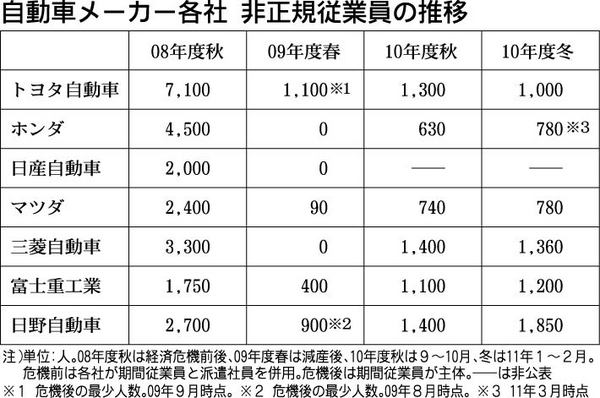 東日本大震災の影響を受けて、自動車メーカーが期間工の新規採用を停止した。期間従業員の採用はエコカー補助金制度が9月に終了した後も緩やかに増加していた。輸出増に対応する中堅メーカーや、新興国向けKD用部品が拡大するトラック各社が増員。さらに...