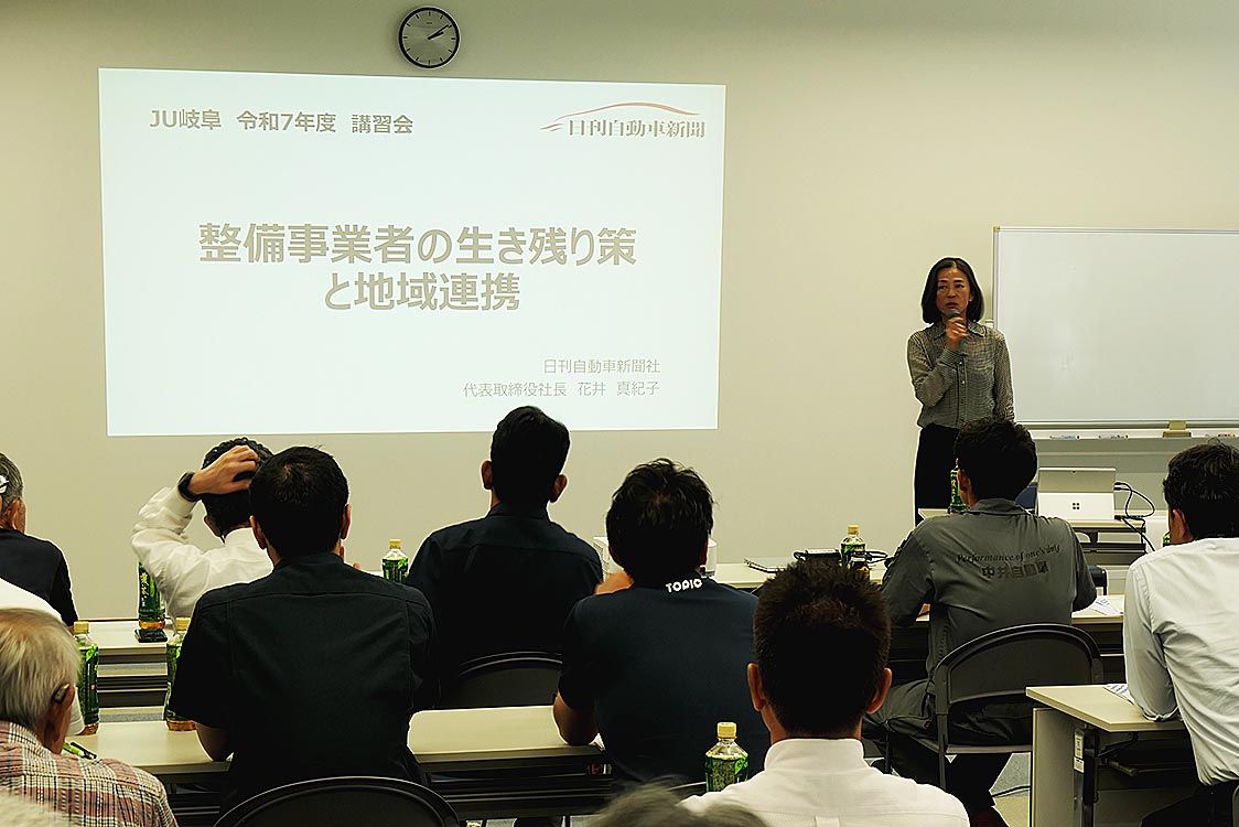 【岐阜】岐阜県中古自動車販売協会(JU岐阜、相宮康弘会長)は、高山市の飛騨・世界生活文化センターで「令和7年度自動車販売店古物管理者講習会」を開催した。当日は高山・飛騨地域の会員を中心に約50人が参加した。 講習会は2部構成で、第1部では...