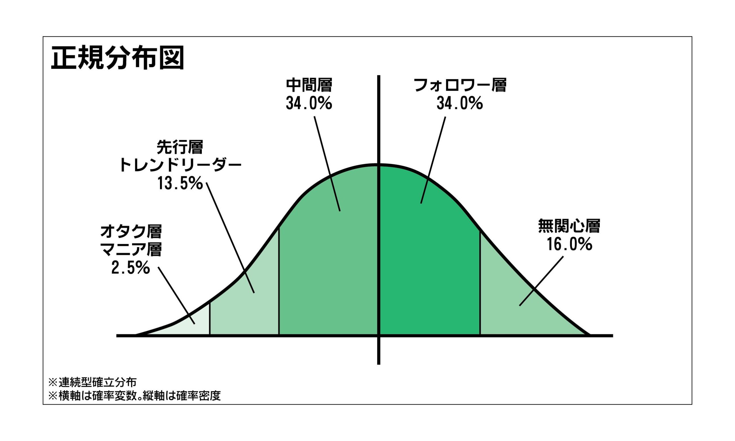 今の販売状況を正規分布図に照らし合わせると、購入者はまだ「先行層」の範囲で、「中間層」に広がるにはやはり一番の課題であるバッテリー価格と性能を向上させなくてはならない。
