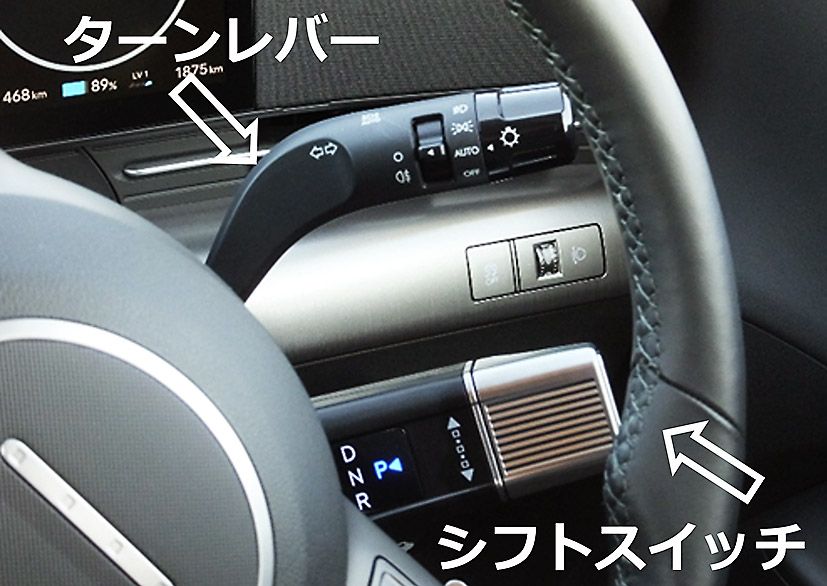 そういう意味で、コナEVはターンレバー位置を日本車と同じ右側に設定している。操作方法も一般的な日本車と変わらない(もちろんコストアップ要因だ)。
