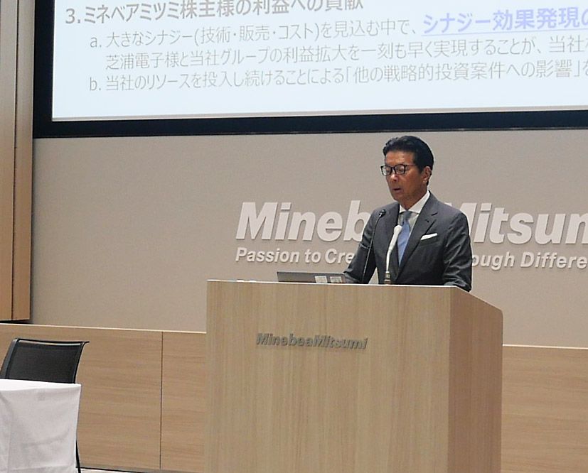 芝浦電子へのTOB(株式公開買い付け)をめぐり、台湾の電子部品大手・国巨(ヤゲオ)と対抗しているミネベアミツミの貝沼由久会長兼CEOは8月18日、都内で記者会見を開き、先週発表した買い付け価格の引き上げ(従来の1株当たり5500円から6200円)について、「シナジーを積極的、広範囲に精査した。財務規律との齟齬はない。価格はいいところまで来ている」と今回の価格が上限に近いとの考えを示唆しつつ、「ヤゲオが200~300円上げてきても勝てるのではないか」と自信を示した。