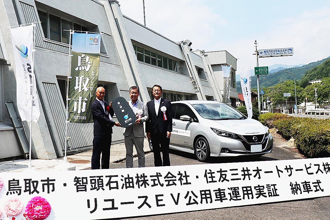 【鳥取】住友三井オートサービス(SMAS、麻生浩司社長、東京都新宿区)と鳥取市、智頭石油(田中康崇社長、鳥取県智頭町)の3者による、中古の電気自動車(EV)の運用に関する実証がスタートした。 3者は6月に「リユースEV運用実証に関する連携...