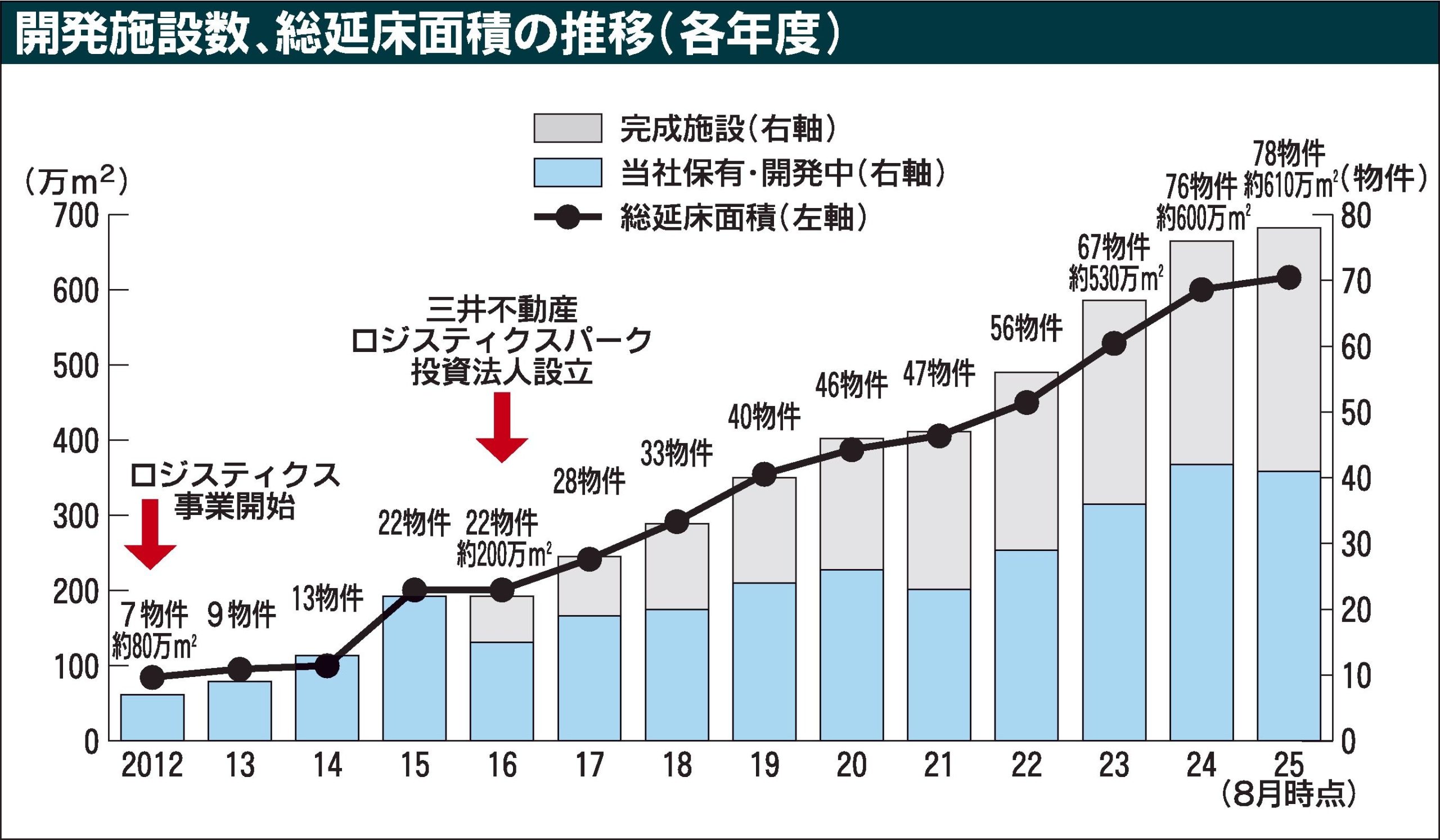 三井不動産は、物流施設「ロジスティクスパーク」の2025年度開発計画を発表した。6物件の着工を予定しており、これにより国内外開発施設は78件、総延べ床面積は約610万平方メートル、累計投資額は約1兆3千億円に拡大する。合わせて荷役時間を可...