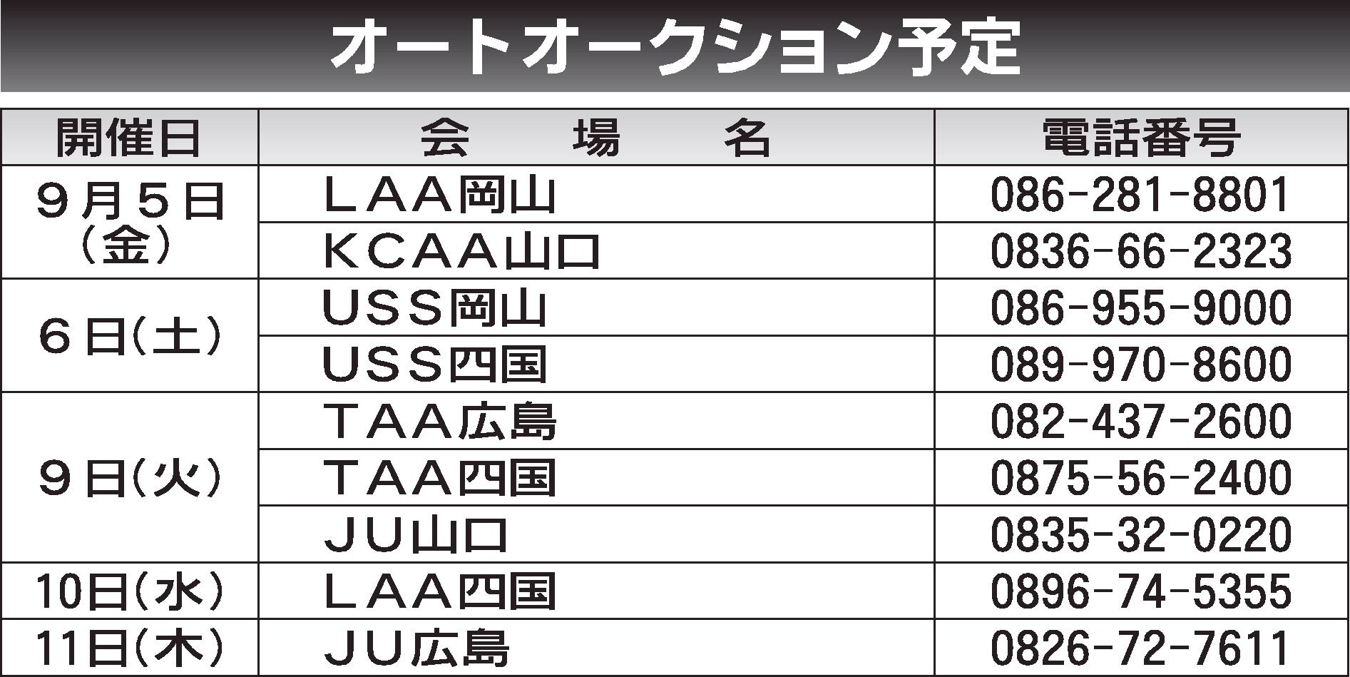 〈オートオークション予定〉中・四国地区 2025/9/5~11