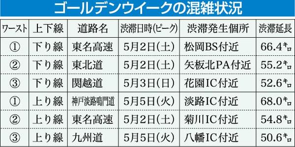 高速道路会社4社のまとめによると、大型連休期間中の全国の混雑状況は、30キロメートル以上の渋滞が前年同期の2倍にあたる58回、10キロメートル以上の渋滞も同じく414回発生したことが明らかになった。常磐道など、これまで渋滞が少なかった区間...