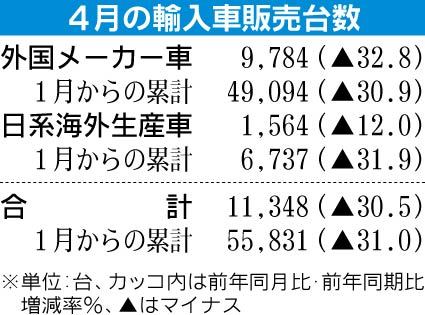 2009年4月輸入車登録台数、30.5%減―12カ月連続のマイナス