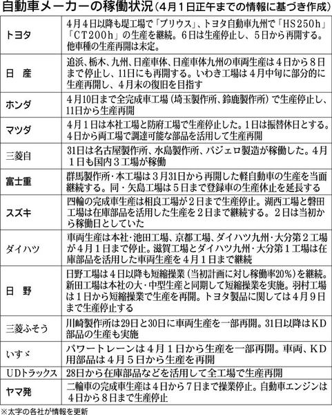 東日本大震災の影響を受けて停滞していた乗用車各社の国内生産が、本格再開に向けて前進しつつある。ホンダは11日から埼玉製作所・狭山工場(埼玉県狭山市)と鈴鹿製作所(三重県鈴鹿市)で生産を再開。当初の計画に対して約5割の操業で生産を行う。4日...
