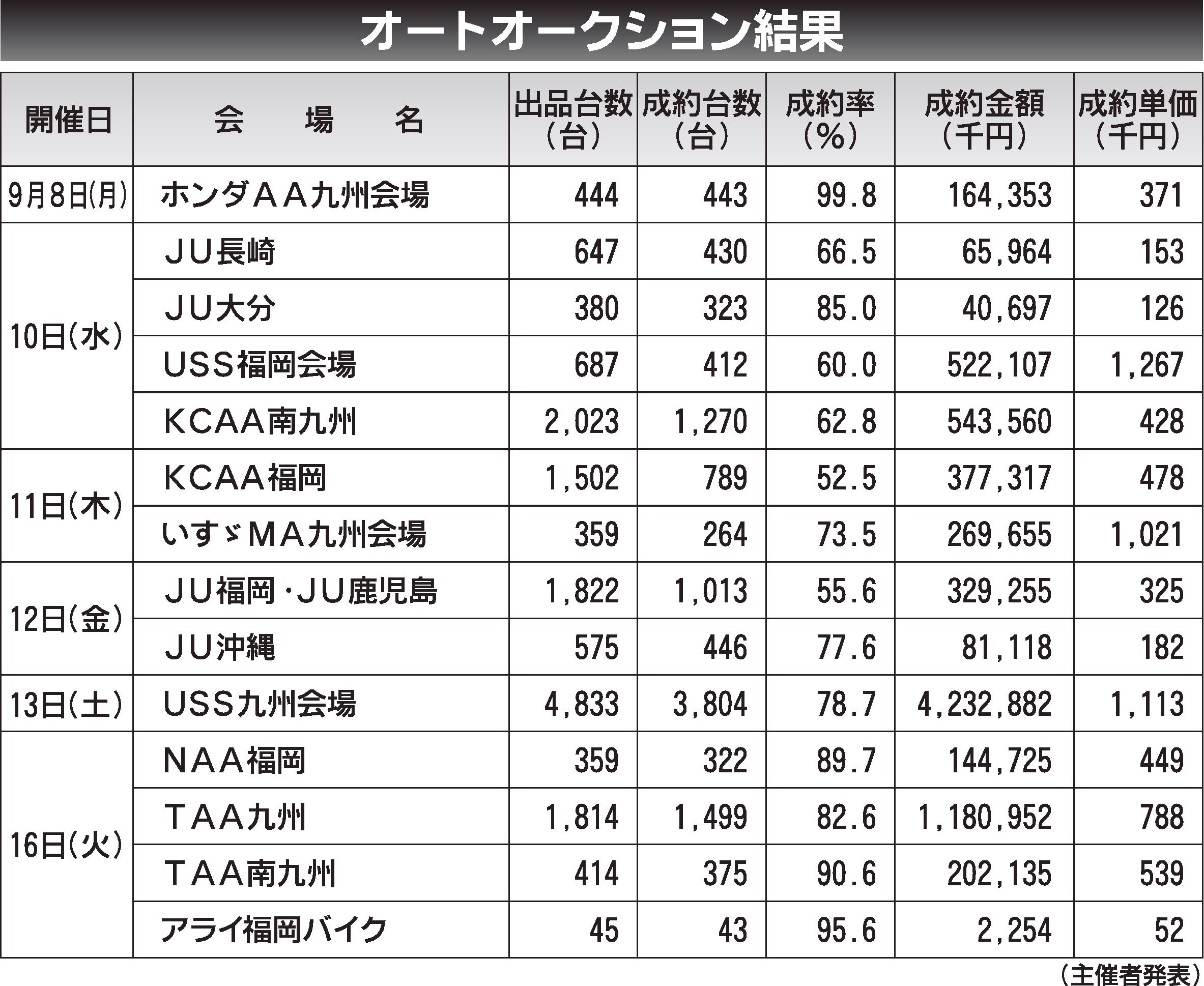 〈オートオークション結果〉九州地区 2025/9/8~16