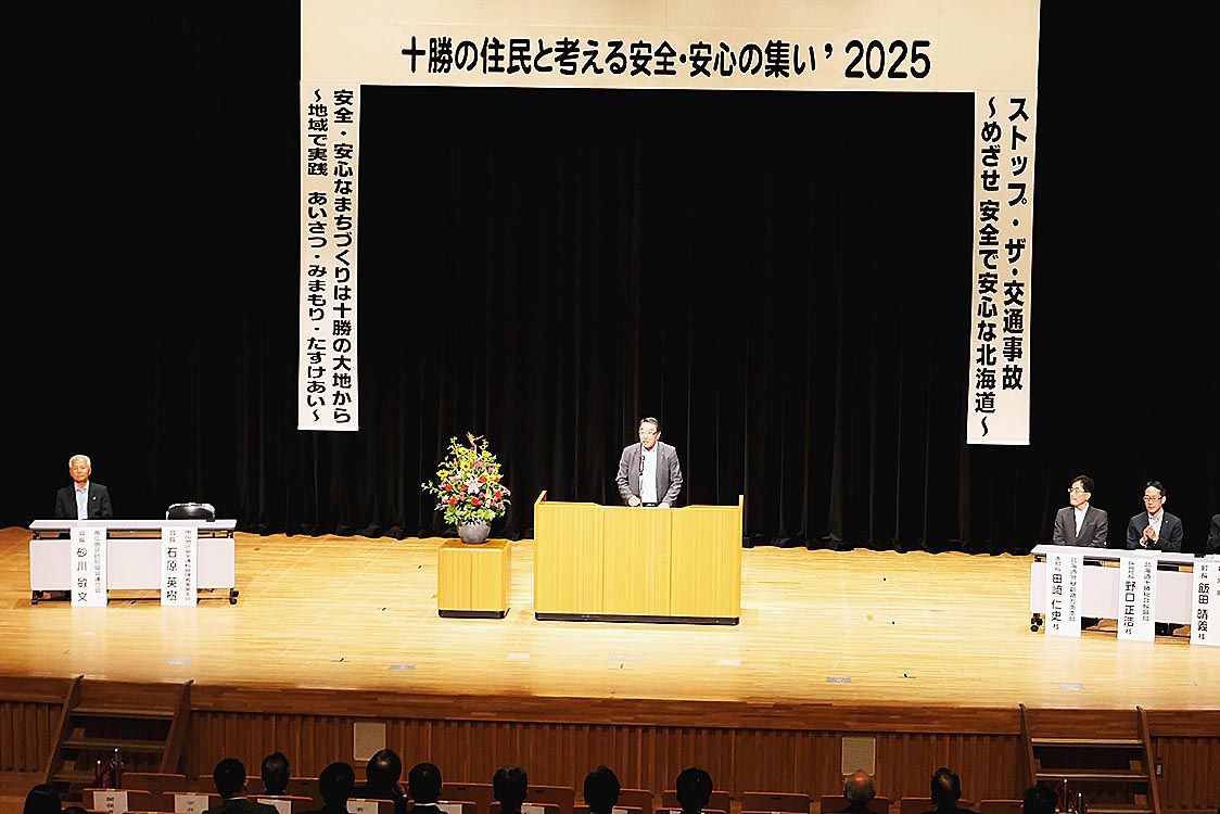 【幕別】10月から始まる全国地域安全運動に先駆け、「十勝の住民と考える安全・安心の集い2025」(主催=帯広地区安全運転管理者事業主会、帯広地区防犯協会連合会)が幕別町百年記念ホールで開かれた。地元住民ら約350人が参加した。道警音楽隊に...