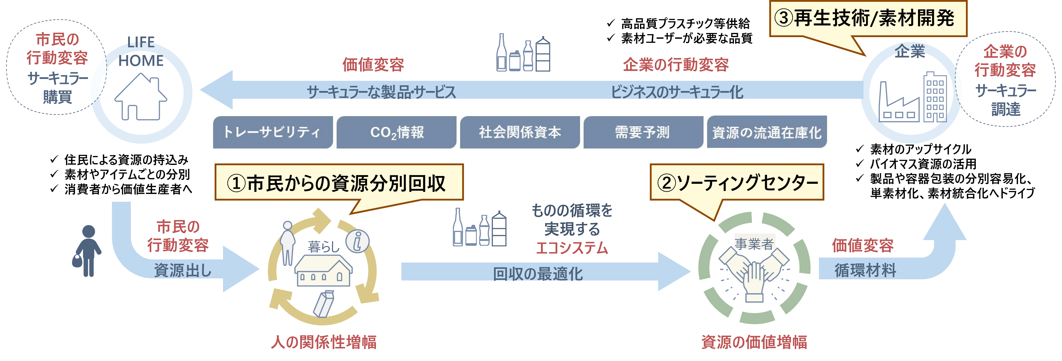 同社が開発したデジタル基盤「PLA-NETJ」を使い、樹脂種や異物混入率、再生材の物性値を一元管理する。関係者間で情報を共有することで回収から再資源化までを可視化し、素材のばらつきを抑える。データに基づいた品質検証を進めることで、自動車部品への応用可能性を探っている。廃車由来資源で積み上げた知見をもとに、生活由来資源を自動車分野へ活かす挑戦の一つといえる。神戸市モデルは、内閣府SIP第3期「サーキュラーエコノミーシステムの構築」にも位置づけられている。リサイクル率の向上や再生材の高品質化といった数値目標を掲げ、生活由来資源を対象にした実証を積み重ねている。