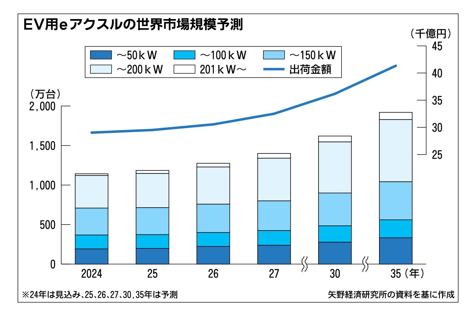 EV用eアクスルの世界市場、2035年には4兆1000億円 矢野経済予測