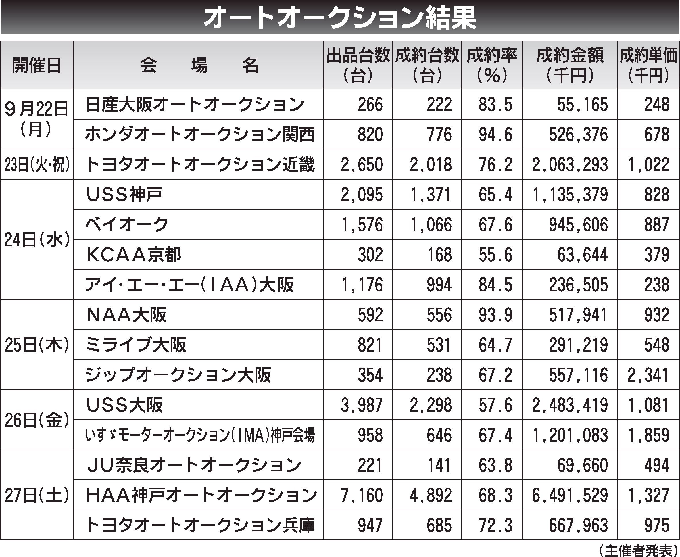 〈オートオークション結果〉近畿地区 2025/9/22~27