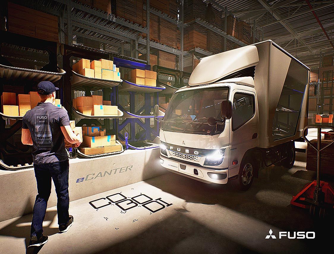 ブーステーマは「フューチャートゥギャザー 新しい時代を駆け抜けろ、ふそうと共に」。今回、初披露するコボディは、小型電気トラック「eキャンター」に搭載し、荷下ろし作業を行うドライバーを主体に荷台を設計した。人工知能(AI)を活用した最適なルート配送を自動で計画するなど、配送効率の向上を目指す。