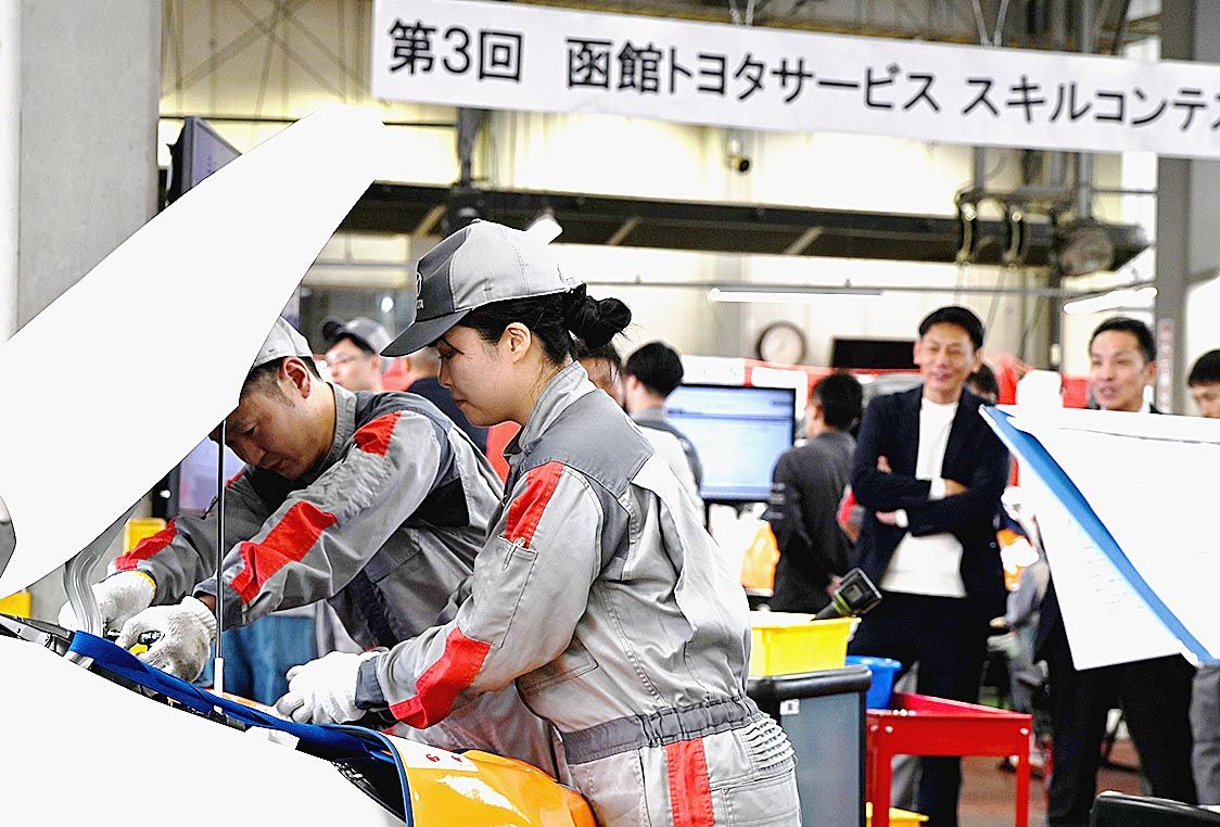函館トヨタ(堀田易社長)は、「第3回サービススキルコンテスト」を本社・昭和店工場で開催した。点検競技に全店舗から11組(2人1組)のエンジニアが出場し、12カ月点検における正確性や故障診断技術、知識などを採点。本通店の森川了一さん、高橋賢...