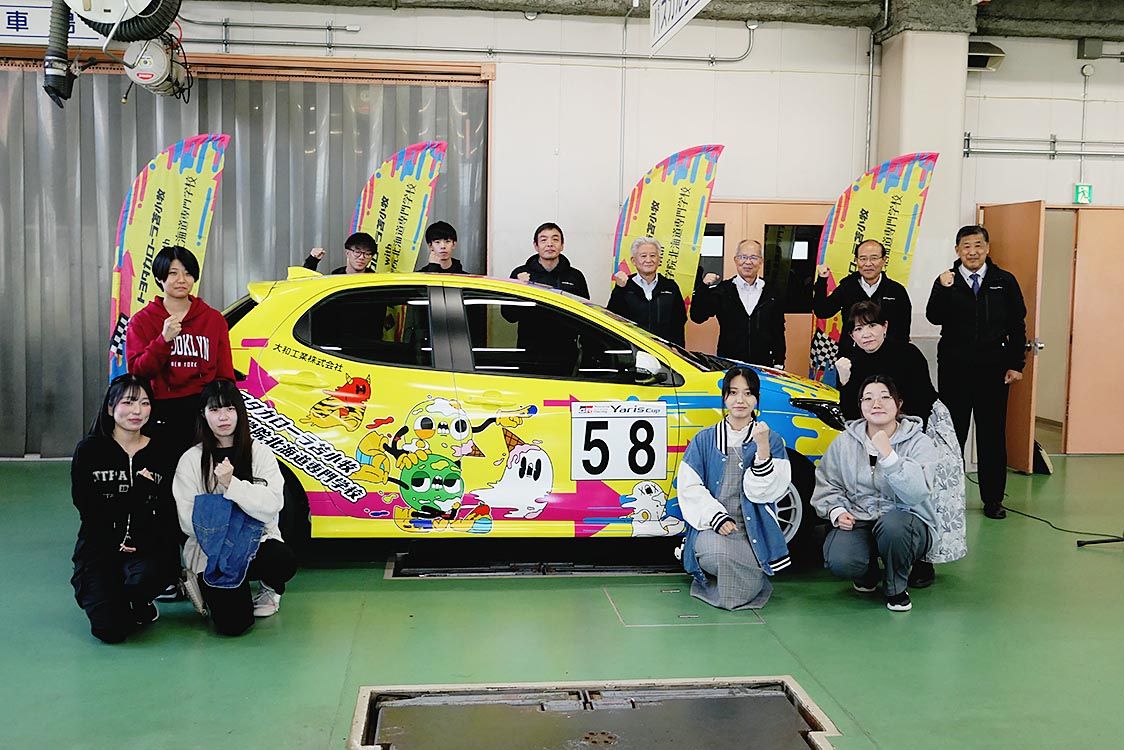 【苫小牧】トヨタカローラ苫小牧(千葉孝三社長)と日本工学院北海道専門学校(福井誠校長)は、今年から共同参戦するヤリスカップの壮行式を開き、参戦車両を公開した。同校の学生がデザインしたラッピングを施し、19日に十勝スピードウェイで開かれる北...