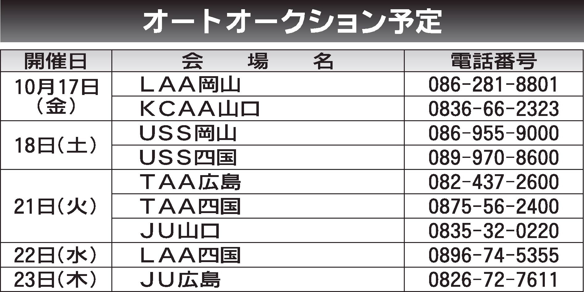 〈オートオークション予定〉中・四国地区 2025/10/17~23