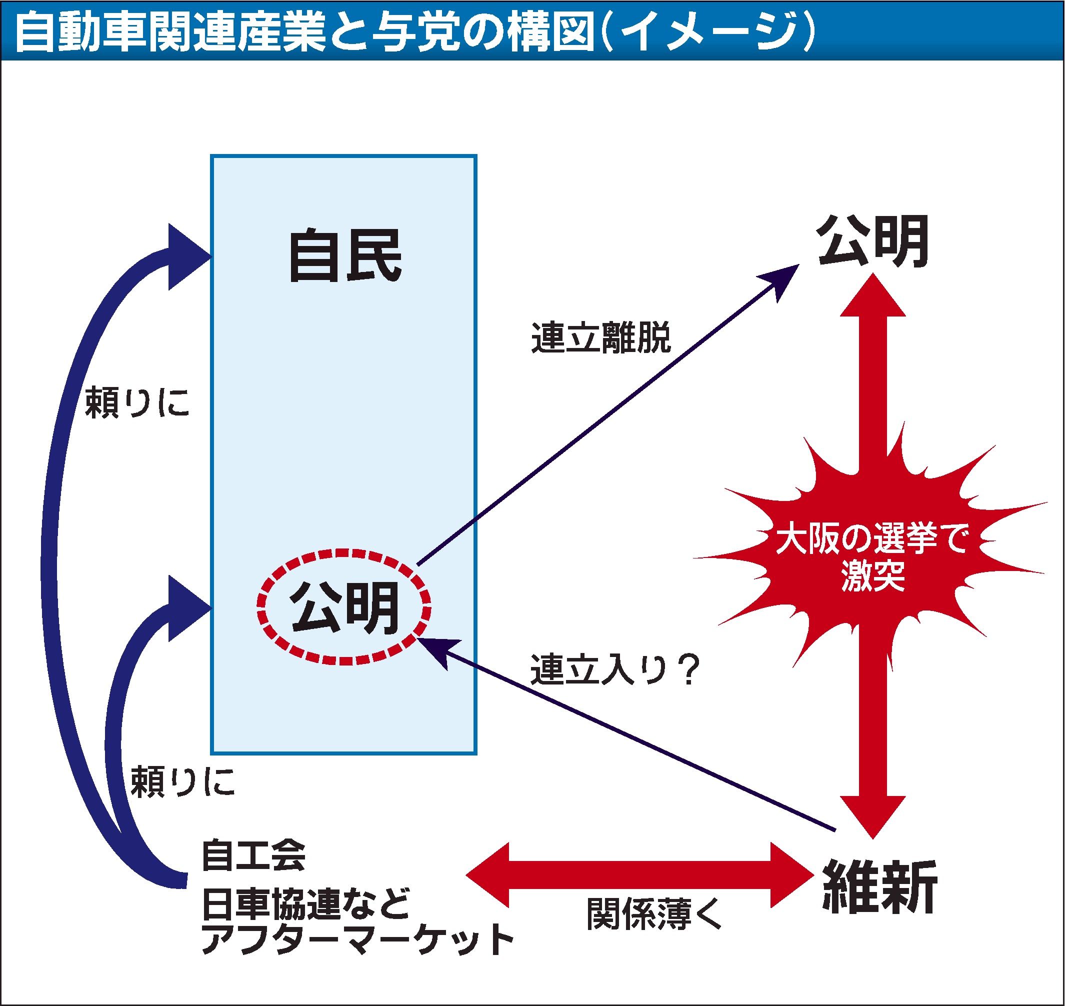 連立政権からの公明党の離脱と、日本維新の会の連立参加姿勢に自動車業界が困惑している。これまで業界は自民党同様、公明にも政策要望を伝えて実現してきた。公明の議員がキーパーソンになってものごとが動いた例もある。しかし、自民党総裁に高市早苗氏が...
