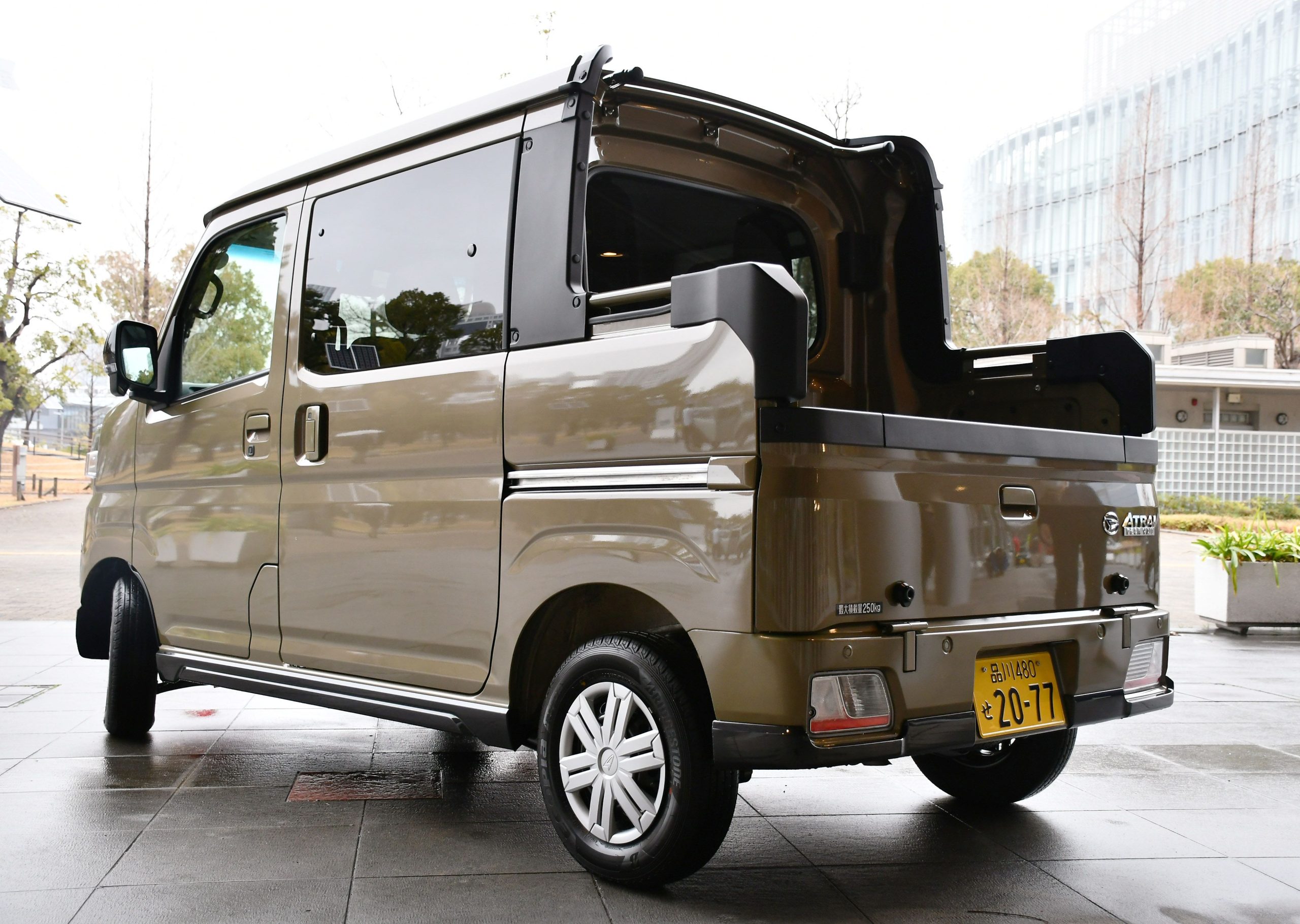 「アトレーデッキバン」の開発のきっかけは、電気店から「冷蔵庫を配達するのに大きな荷室は不要で、単に冷蔵庫を載せられる商用車が欲しい」ということだったらしい。