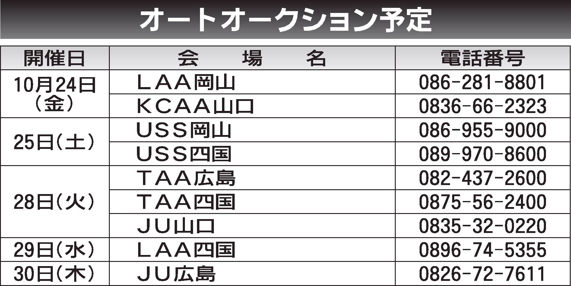〈オートオークション予定〉中・四国地区 2025/10/24~30