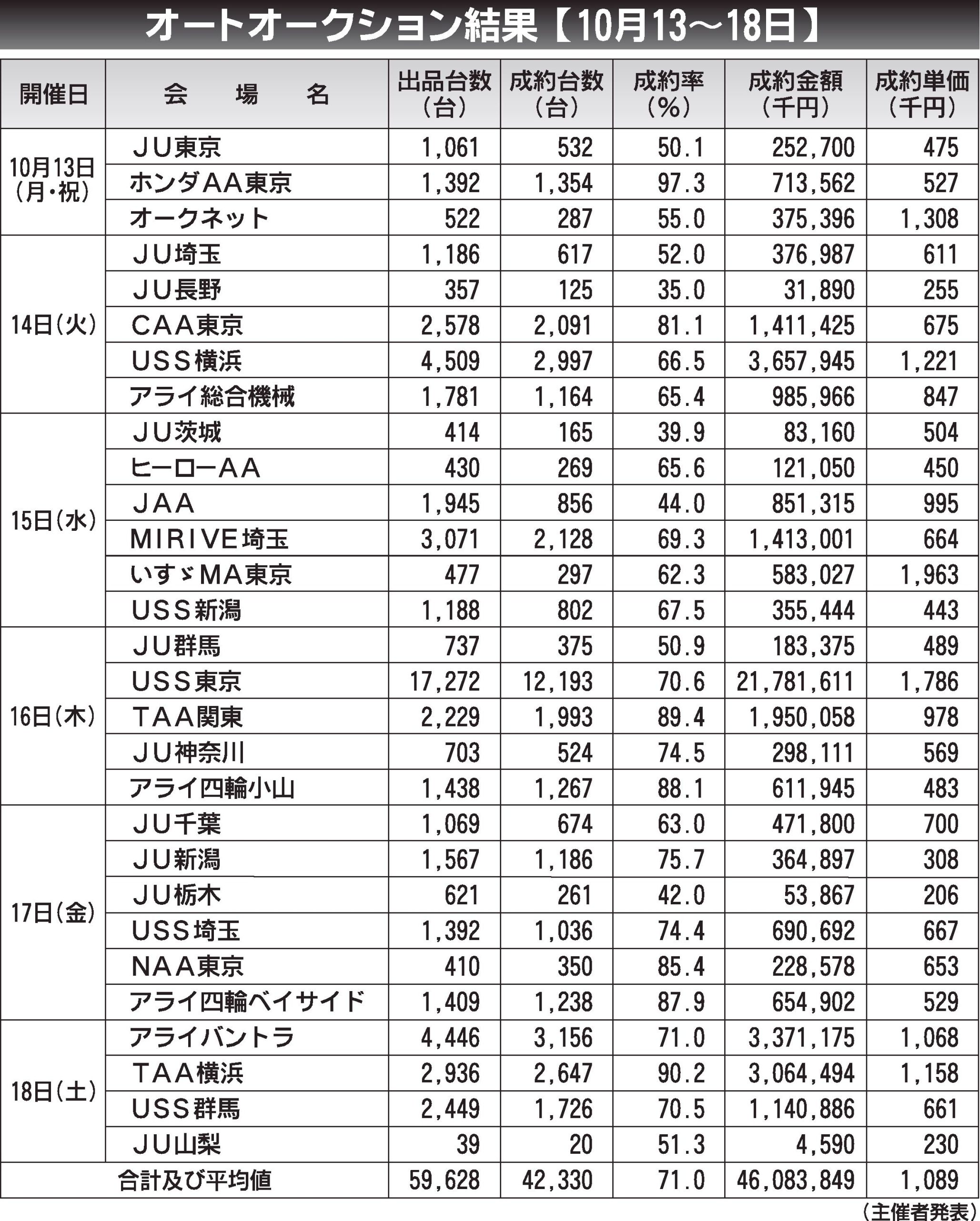 〈オートオークション結果〉首都圏 2025/10/13~18