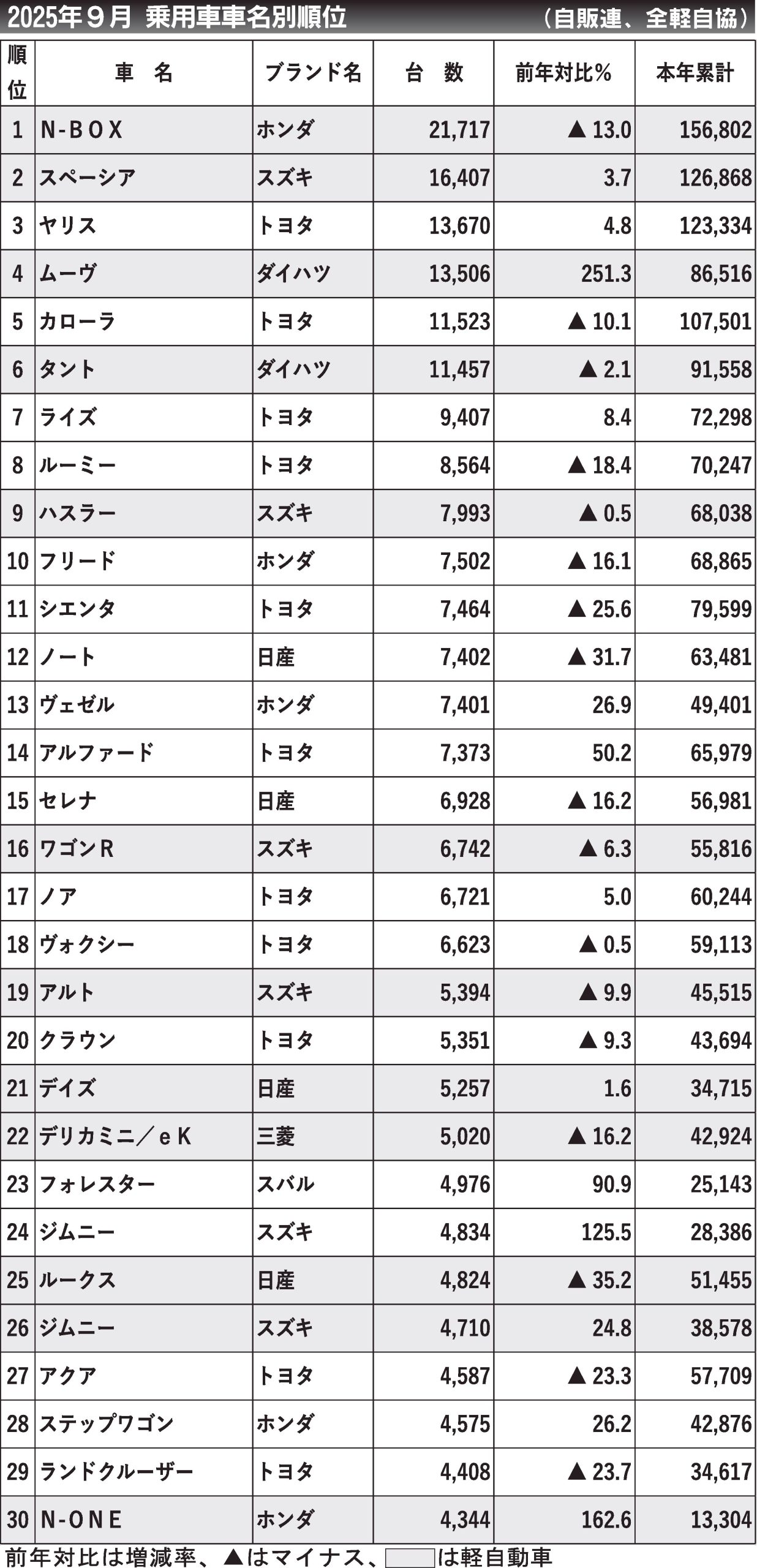 〈2025年9月地域別新車販売(含む軽自動車、海外生産車)〉