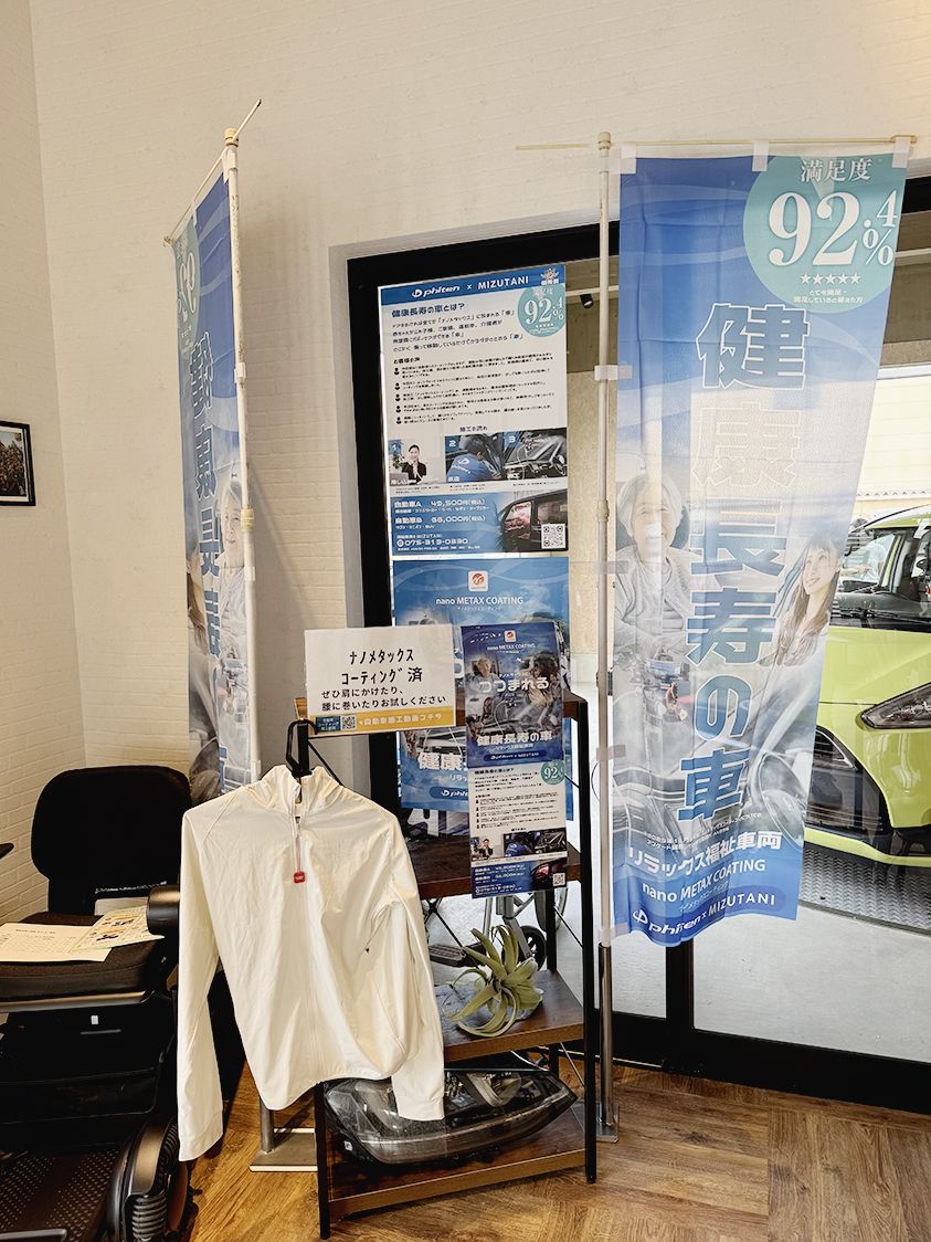 福祉車両の販売や整備を行うミズタニ(水谷匡社長、京都市南区)は、医療機器などを手掛けるファイテン(平田好宏社長、京都市中京区)と組んで「健康長寿の車(リラックス福祉車両)」と名付けた新たな試みを行っている。リラックスする効果があるというフ...