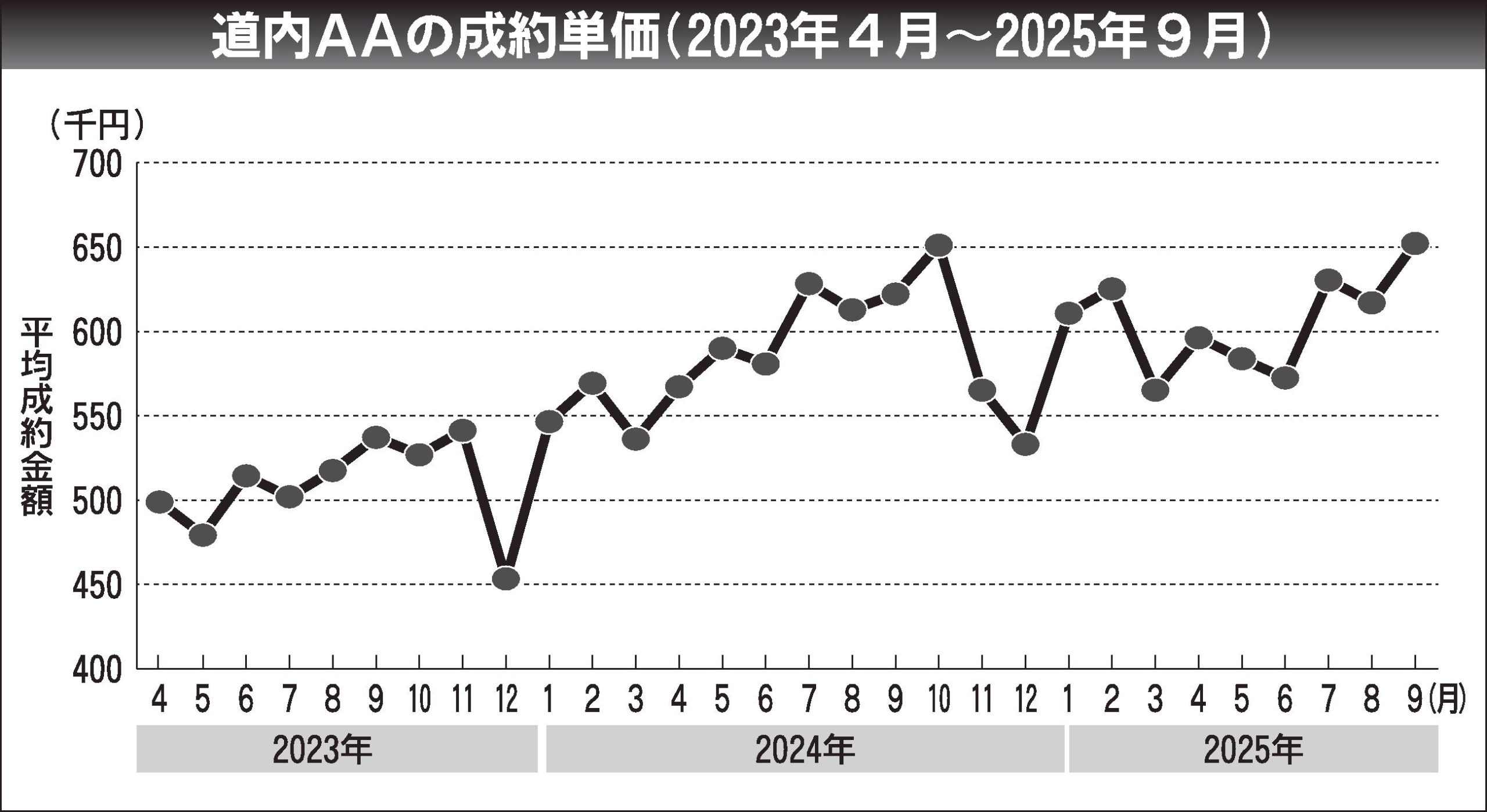 9月の道内中古車オークション(AA)の台当たり平均成約金額は65万5千円で、2024年10月以来、11カ月ぶりに65万円を超えた。 出品台数は2万4953台で、前年同月と比べて690台、2.8%増加した。前年同月を上回ったのは7カ月連続。...