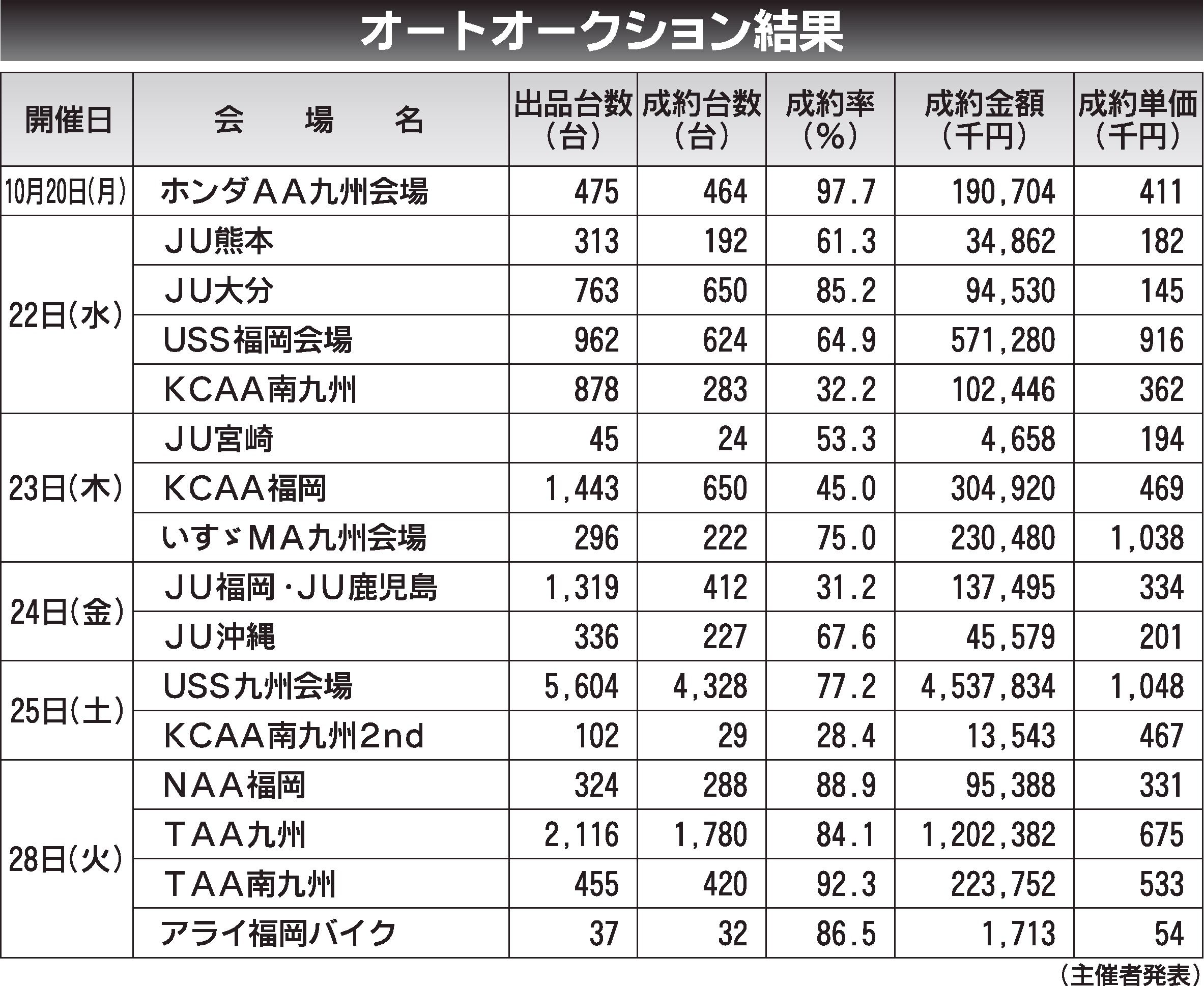 〈オートオークション結果〉九州地区 2025/10/20~28
