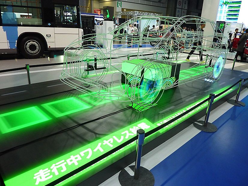 この後、舞台は未来の街へ移動。車両そのものが進化し、デザインの自由度も増した形で、ソーラーカーや燃料電池バス、走行中ワイヤレス給電など数多くのモビリティやシステムが出展されており、将来の街並みで出会うかもしれない。