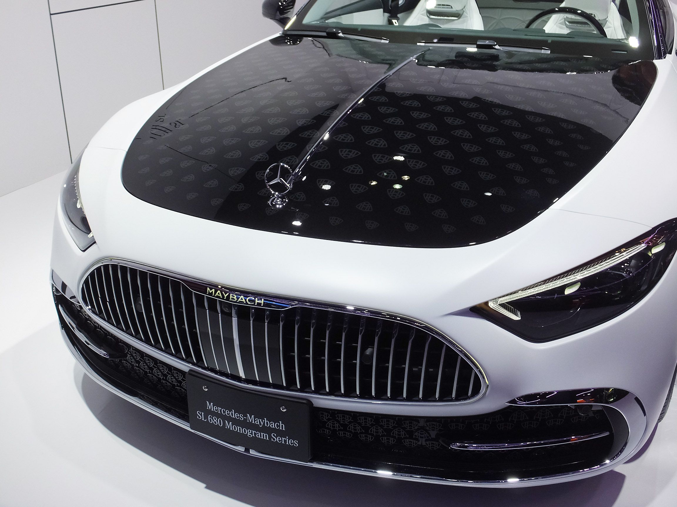 メルセデス・ベンツは、新型「CLA」や新型「GLC」、AMGがプラットフォームから専用開発した「コンセプトAMG GT XX」など、EVを前面に打ち出す。気になるのはブースの奥にある「マイバッハSLモノグラム」。ボンネットやバンパー開口部などには無数のマイバッハのエンブレムが並ぶ。そしてグリル上部には「マイバッハ」と表記。さらにボンネットには、SLなのに後付けのようなスリーポインテッドスターまで直立する。分かりやすいというか、アピールが過ぎるというか…。