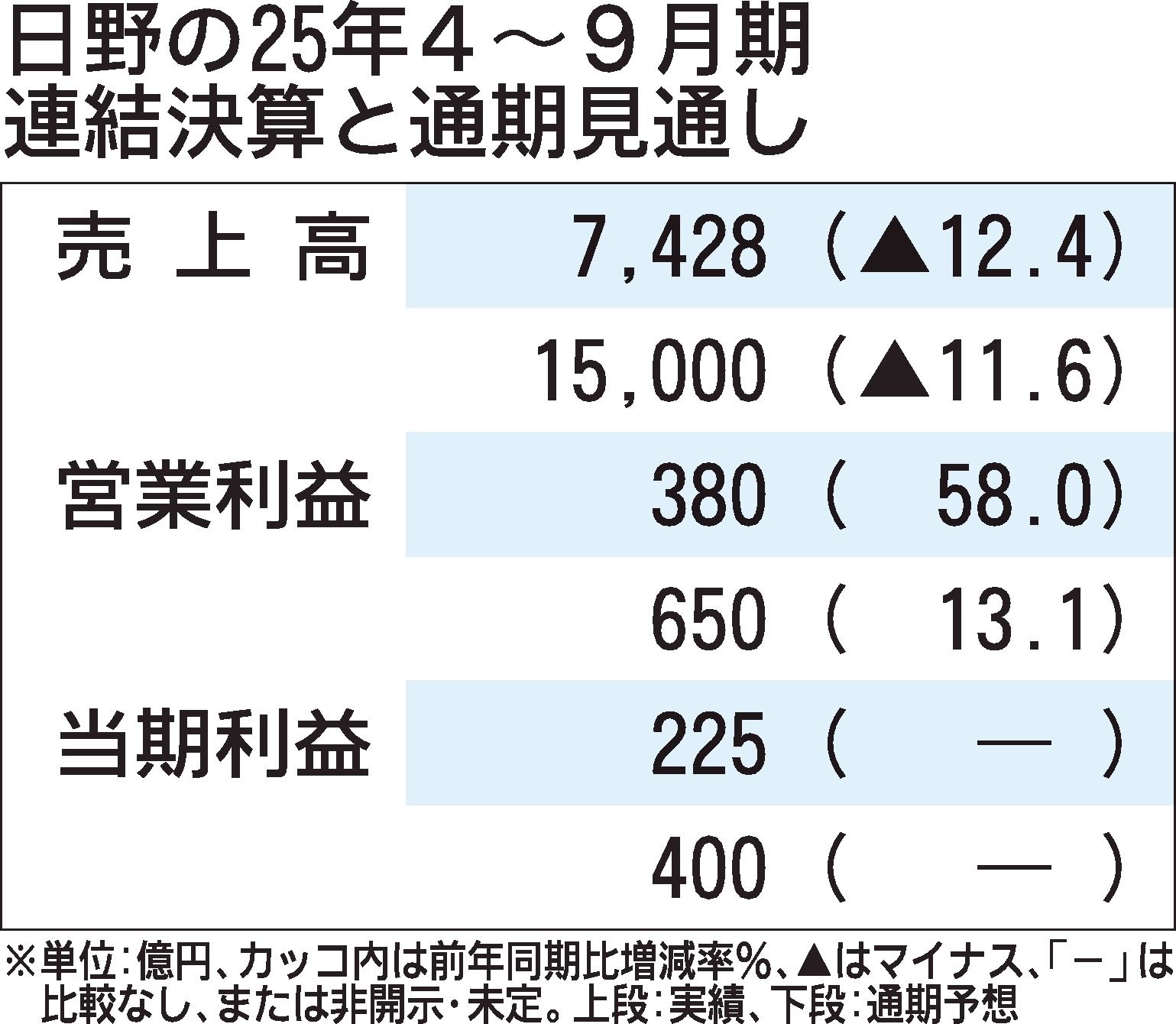 25年4~9月期連結業績は減収増益となった。売上高は前年同期比12.4%減の7428億円だった。販売実績は同13.9%減の53万5千台となり、そのうち、国内は小型トラックの商品切り替え遅れによって同25.6%減の15万6千台と落ち込んだ。