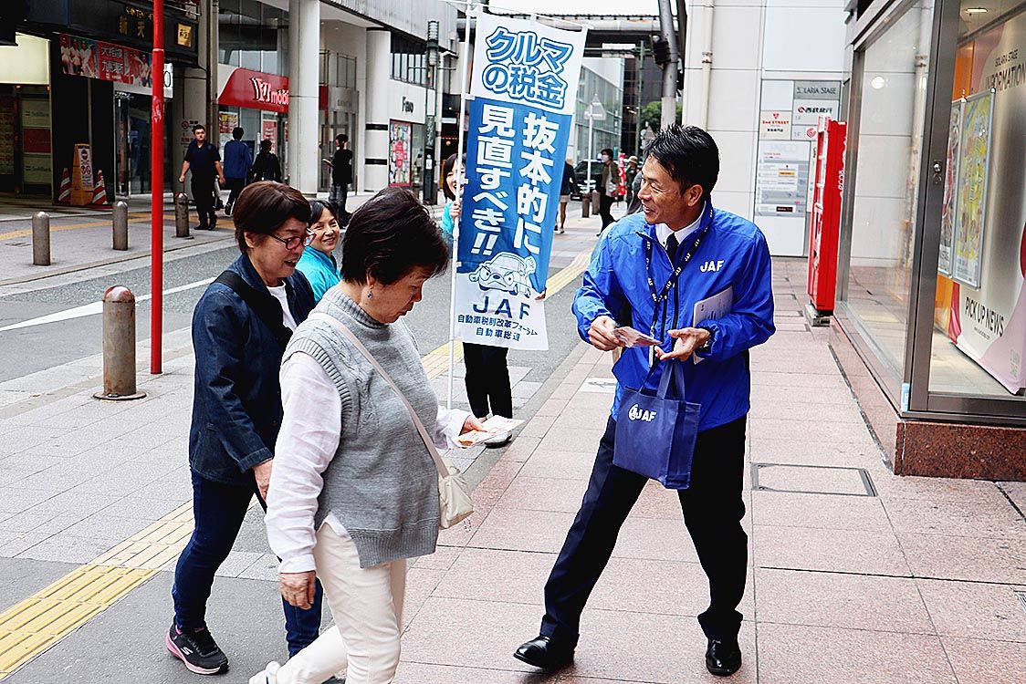 日本自動車連盟(JAF)福岡支部(佐竹伸一支部長)は、福岡市中央区の商業エリアで自動車税制改正に関する街頭啓発を実施した。同支部や日本自動車販売協会連合会福岡県支部などから17人が参加。ガソリン暫定税率廃止などの税制改正への機運を高めよう...