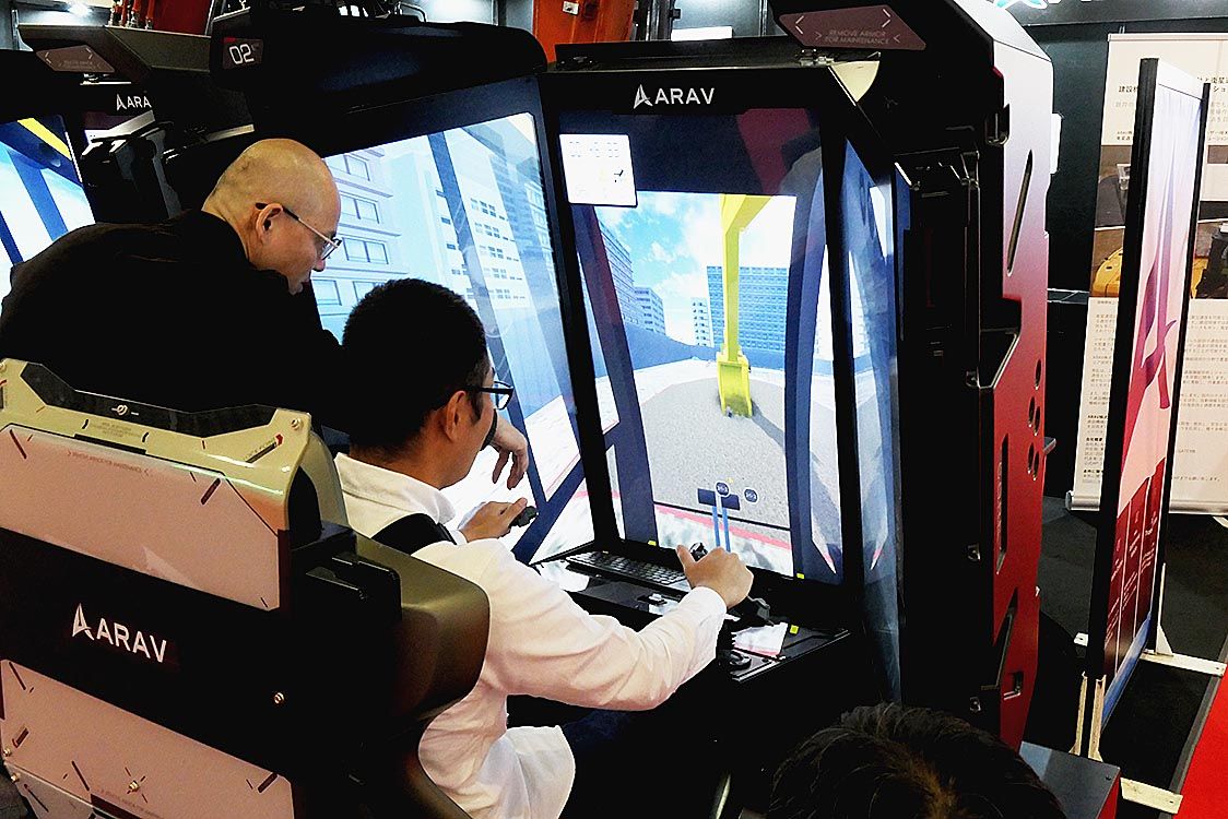 建設機械の自動運転システム開発を手掛けるARAV(白久レイエス樹社長、東京都文京区)は、ショベルカーの遠隔操作シミュレーターを出展している。実際の重機を模したコクピットに座ってレバーを動かすと、画面の中のショベルカーを操作することができる...