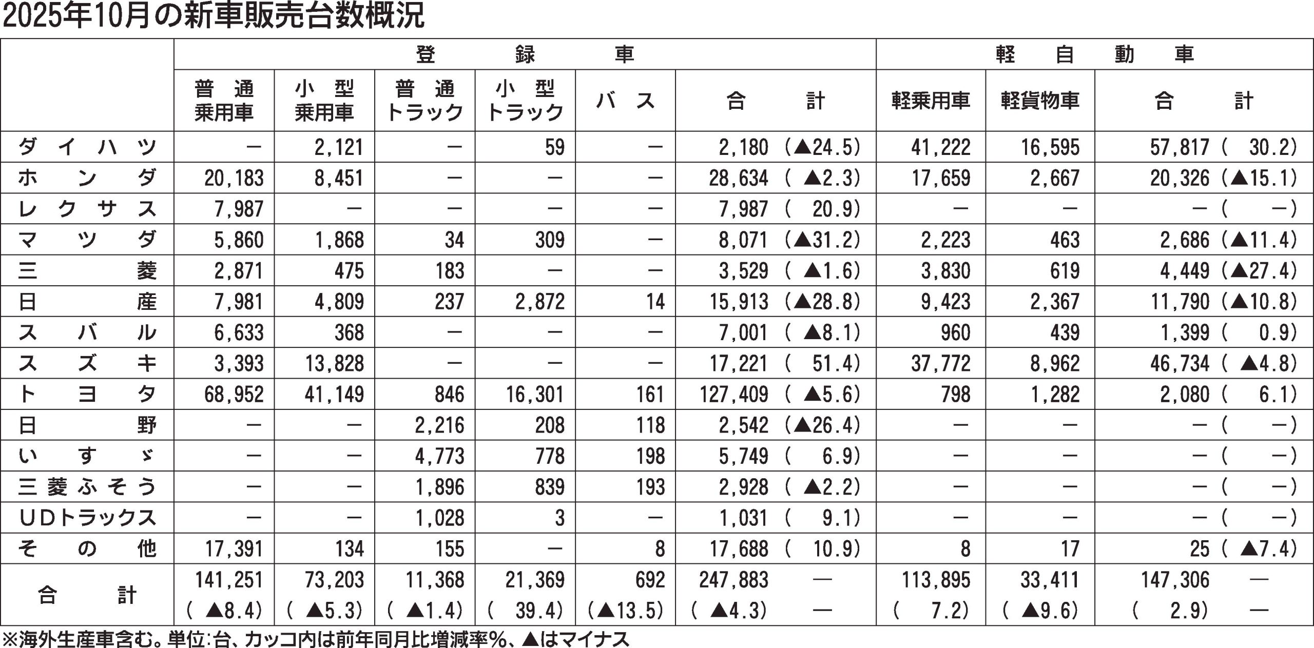 〈2025年9月地域別新車販売(含む軽自動車、海外生産車)〉