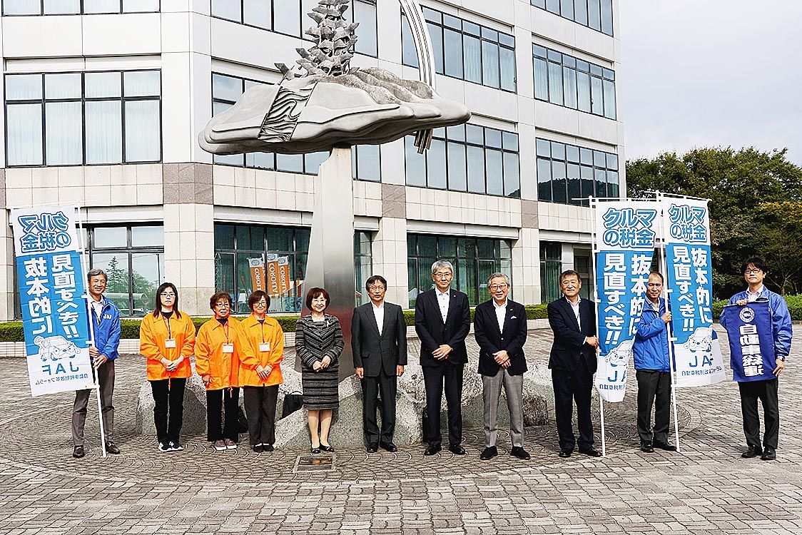 【山形】日本自動車連盟(JAF)山形支部(髙橋修支部長)は、山形市の山形ビッグウイングで開催された「やまがた環境展2025」の会場内で、自動車関係諸税の負担軽減などを訴える街頭活動を実施した。 JAF山形支部の髙橋支部長と職員のほか、日本...