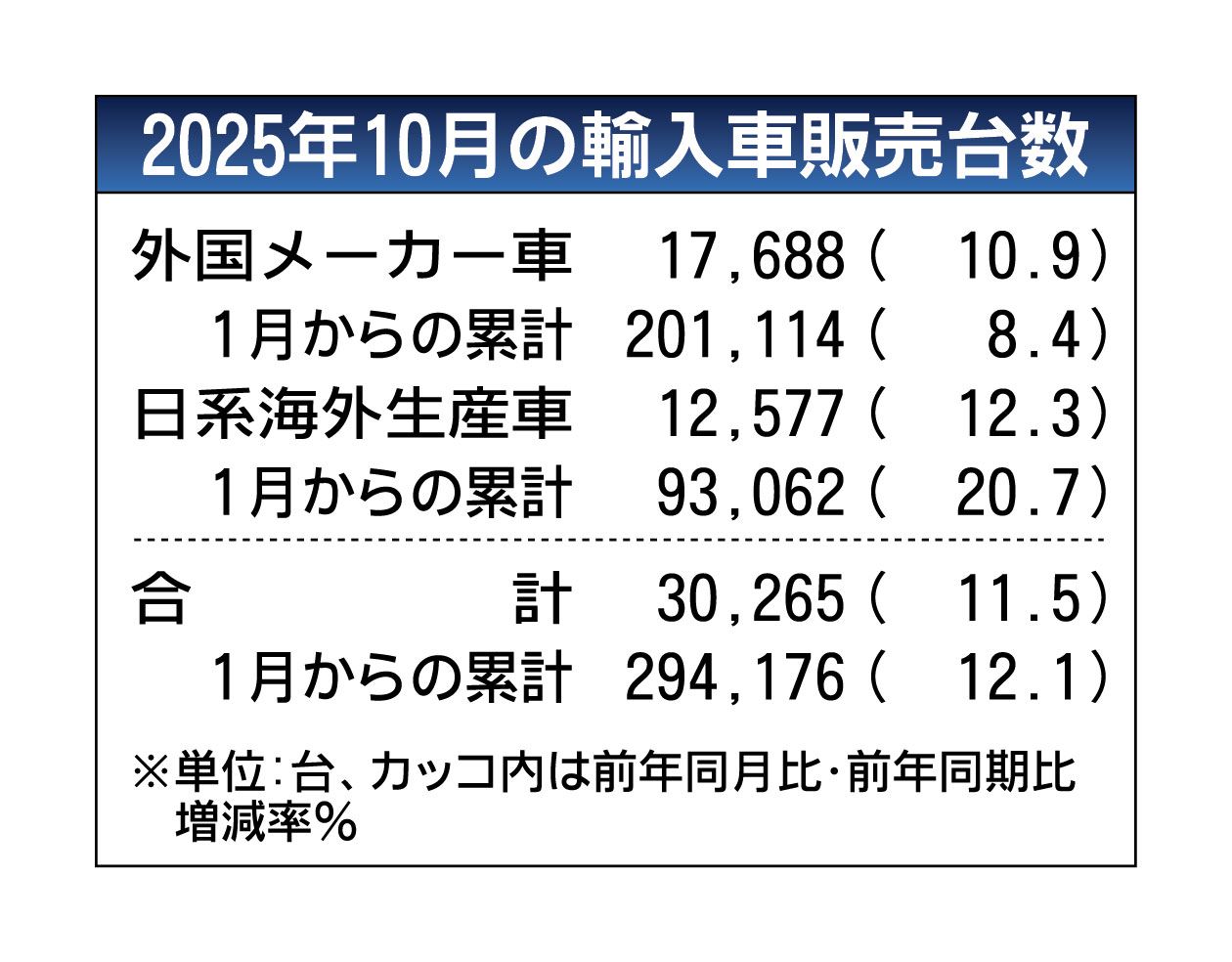 2025年10月の外国メーカー車販売、10.9%増で10カ月連続プラス EVは34.4%増